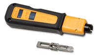 A ferramenta correta a ser utilizada para a conexão final dos condutores no hardware de conexão também deve ser informada por seu fabricante. Se for uma ferramenta de impacto (punch down), deve-se consultar com o fabricante do conector qual a força de impacto e ponteira corretos para o modelo de conector utilizado. Abaixo, exemplo de uma ferramenta de impacto com ponteira para conexão IDC tipo 110 e, logo em seguida, vídeo sobre essa ferramenta: